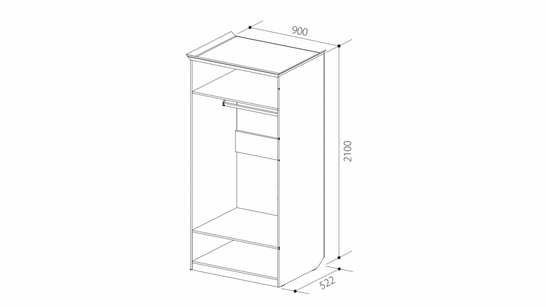 ДхВхШ: 900х2100х522 мм (без учёта карниза).